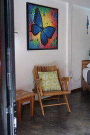 Together these rooms make "the Morpho House duplex" & is perfect for families or small groups. Each has a spacious adjoining rear patio with hammocks & custom wood furniture with garden & pool view and an expansive front porch.